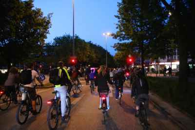 Breiter, länger, weiter: Hamburgs Radfahrer geizen nicht mit Superlativen. Immer am letzten Freitag im Monat geht’s auf die Räder, ganz unabhängig vom berühmten hanseatischen Wetter. Bei Schnee und Eis düsen 500 Radfahrer durch die Hansestadt, an sommerlichen Abenden beinahe 6.000. Das kann dann schon eine Weile dauern, bis alle über die Kreuzung rüber sind.